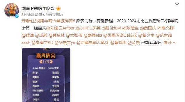 2023-2024湖南卫视芒果TV跨年晚会第一组嘉宾